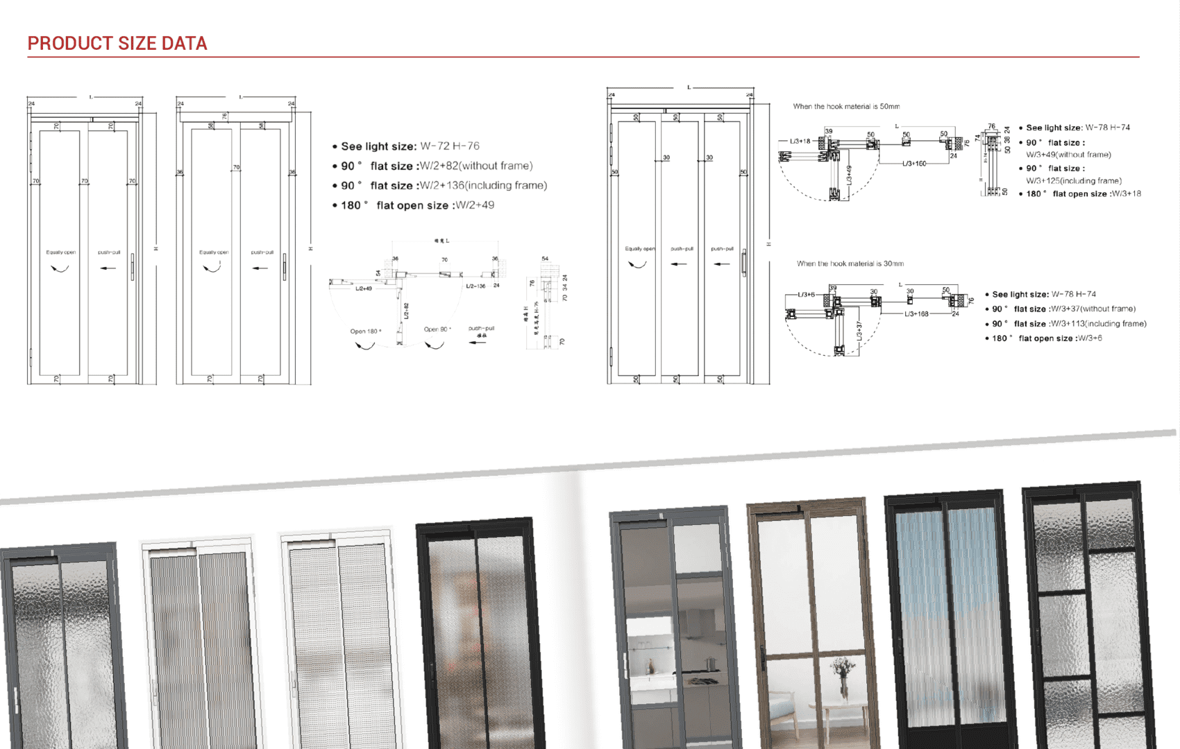 100% fully open with 9 cm folding thickness, no bottom rail for barrier-free access.