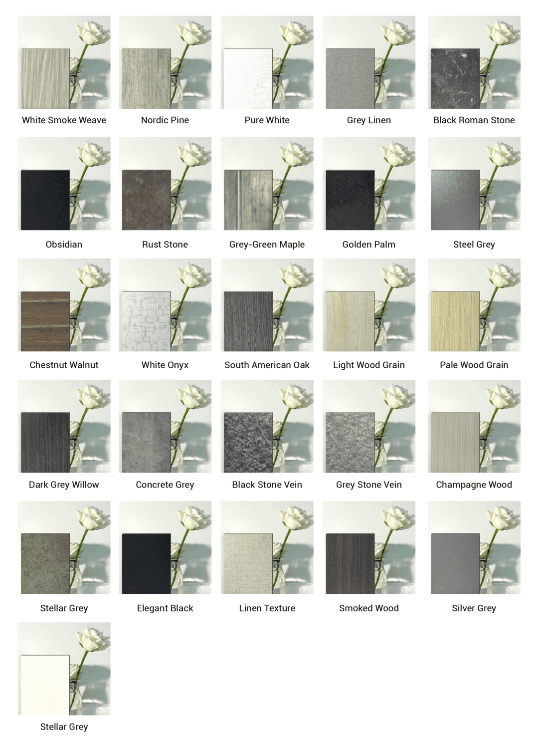Experience an unrivaled spectrum of sophistication. Our expansive color library spans timeless solids, textured wood tones (authentic walnut, oak, cherry), to modern matte grays and metallic brushed finishes—all customizable to harmonize with any interior style.